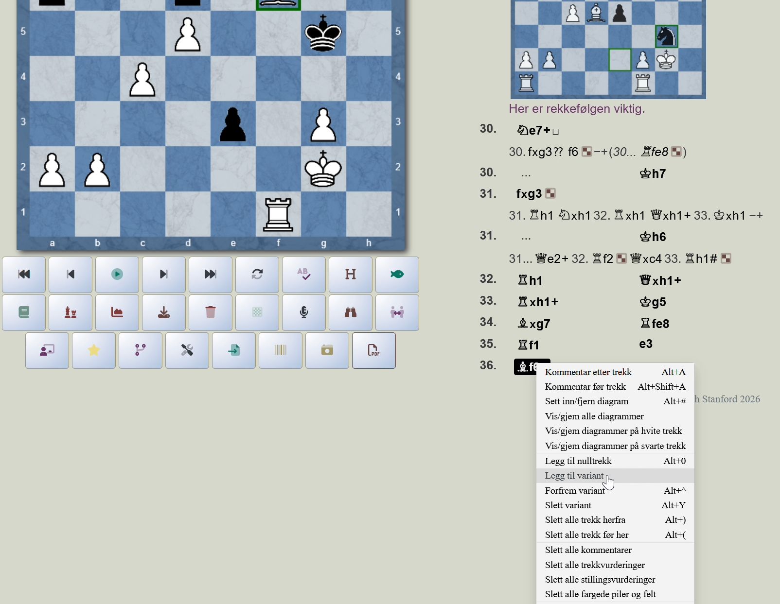 Om du for eksempel ønsker å å legge til analyser på hva som skjer videre i et parti fra siste trekk, og du ikke gjør noe spesielt, ser det etterpå ut som om partiet ikke sluttet der, men at partiet fortsatte med de analysene du har lagt inn.